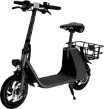 Designed with convenience in mind, the scooter features a lightweight yet durable aluminum/carbon alloy frame and a foldable design, making it easy to store at home, carry in a car, or take on public transport. The 12–12.5-inch tires offer enhanced stability and comfort, while the front and rear disc brakes provide reliable stopping power for added safety.